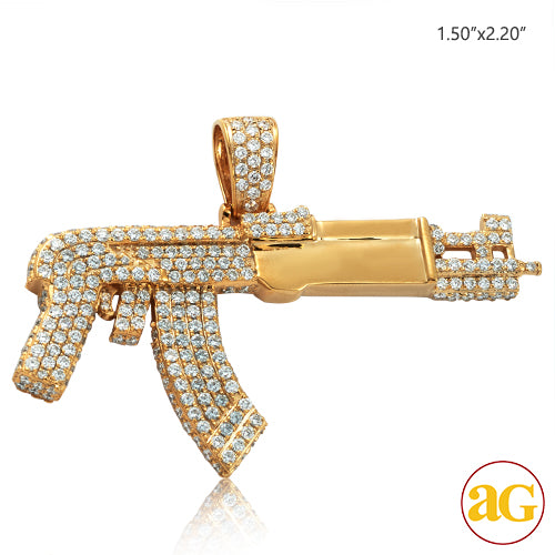 14KY 3.20CTW DIAMOND AK-47 GUN PENDANT